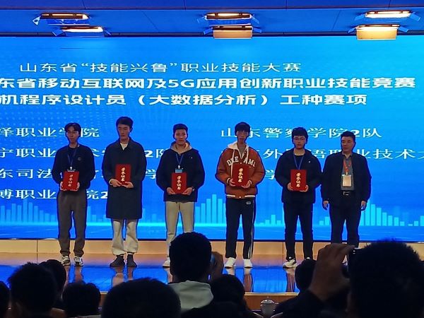 此前,11月24日至25日,山东省“技能兴鲁”职业技能大赛——第五届山东省移动互联网及5G应用创新职业技能竞赛计算机程序设计员(大数据分析)赛项决赛在济宁职业技术学院举办。我院有6名学生和1名教师参加了比赛,以上巩程程团队获得山东省二等奖,并获得国赛资格,庄波老师获得职工组二等奖。