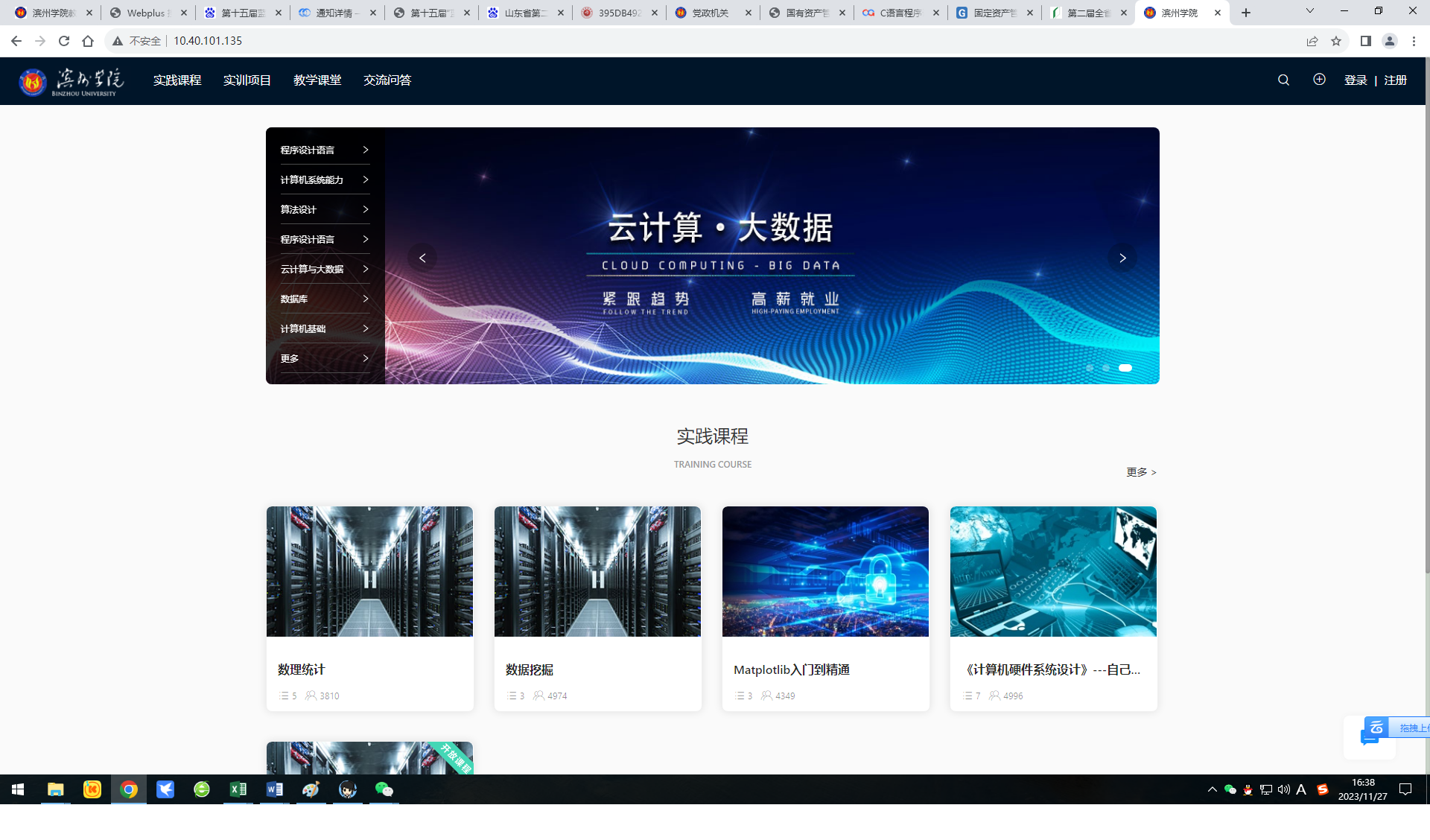 大数据科研教学一体化平台大数据相关的实训课程资源库于2017年投入运行,共同为大数据专业教学及科研提供教...